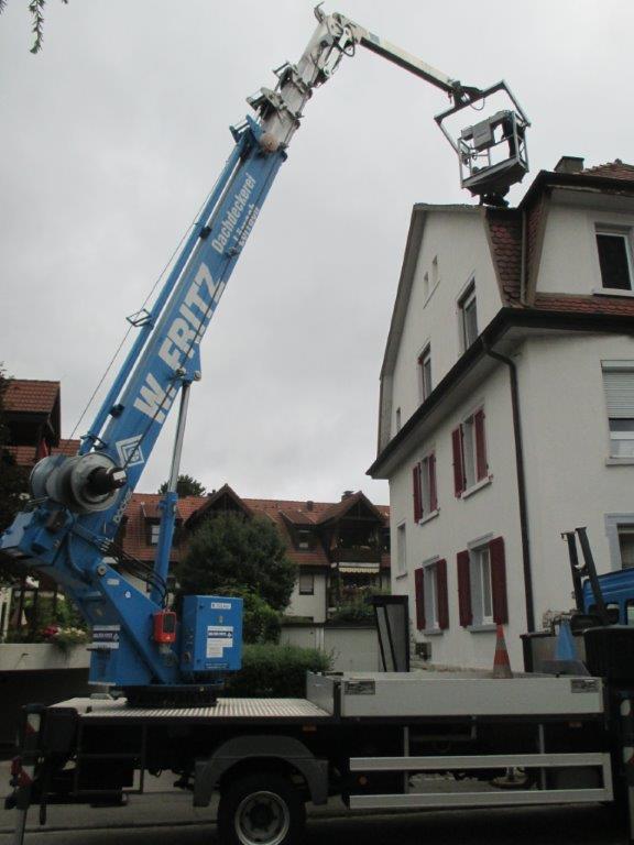 Unser LKW-Kran ist mit einer Arbeitsbühne bis 32 m Höhe ausgestattet. Dachreparaturen und Blechnerarbeiten sowie Wartungsarbeiten an Gebäuden und Baumschnitte können wir in exponierter Lage schnell und ohne aufwändige Sicherheitsvorkehrungen wie Gerüste ausführen.